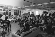 Audience listening to the soundtracks of Rilke's poems performed in German by actress Irina Hüfner